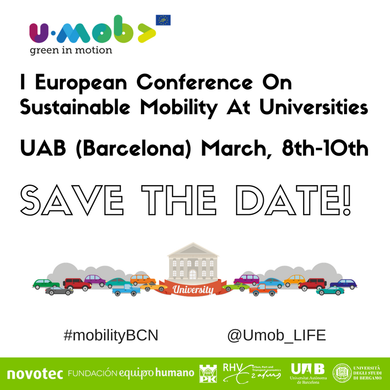 Thanks to this conference, U-MOB LIFE will reach university communities across Europe, driving a change of mentality that will turn from unsustainable modes of transport (car) to non-motorized modes (cycling or walking) and public transport. In addition to the one that will take place in the UAB, two more international conferences of sustainable mobility will be held: in Cracow (2019) and in Bergamo (2021).